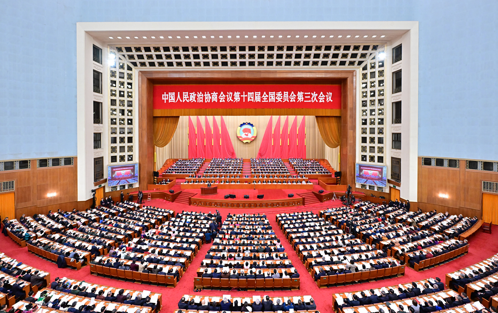 3月4日下午,中国人民政治协商会议第十四届全国委员会第三次会议在北京人民大会堂开幕。新华社记者 翟健岚 摄